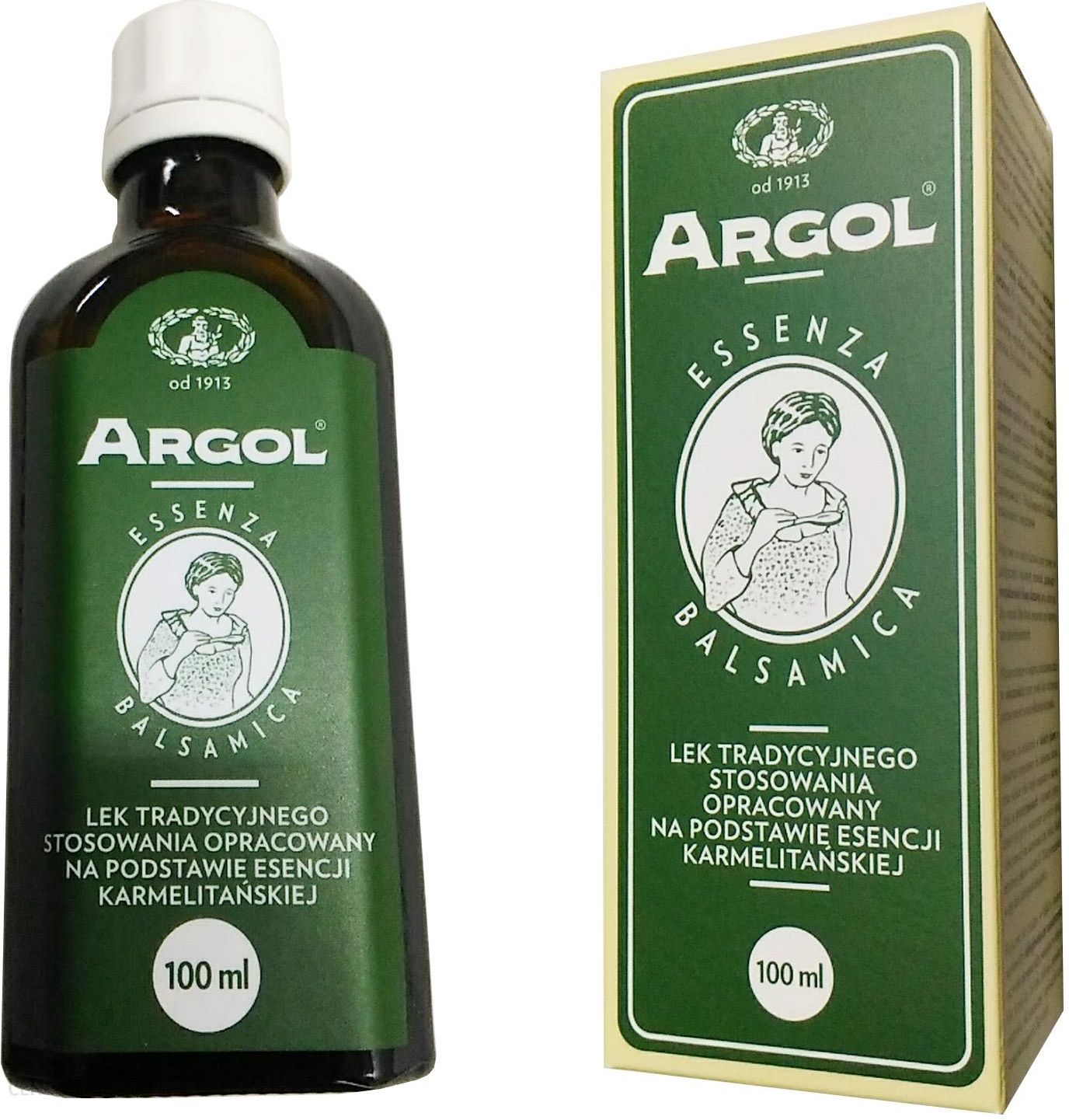 Argol Essenza Balsamica 100mlArgol Essenza Balsamica jest preparatem pochodzenia roślinnego, w którym substancjami czynnymi są wybrane olejki eteryczne wyodrębnione z roślin i wyizolowany z olejku mięty pieprzowej mentol. Produkt jest zalecany do stosowania jako środek pomocniczy o działaniu: przeciwzapalnym, przeciwbólowym i antyseptycznym w ostrych i przewlekłych schorzeniach górnych dróg oddechowych, gardła, krtani, zatok przynosowych oraz śluzówki jamy ustnej.