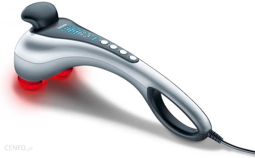 MASAŻER URZĄDZENIE DO MASAŻU CIAŁA BEURER MG100 Beurer MG 100 to ektryczne urządzenie masujące z lampą podczerwieni dzięki ktoremu można zafundować sobie i innym osobom skuteczny, dobroczynny masaż do samodzielnego wykonania. Masaże mogą działać odprężająco lub pobudzająco i są chętnie stosowane w przypadku napięcia mięśni, dolegliwości bólowych i zmęczenia. Urządzenie jest przeznaczone do użytku własnego, nie do celów medycznych lub komercyjnych. Masażer ręczny Beurer MG 100 jest przeznaczony do masażu pojedynczych części ludzkiego ciała.Włącz urządzenie za pomocą przycisku Wł./Wył. Rozpocznie się program startowy. W razie potrzeby za pomocą przycisku Speed można zwiększyć lub zmniejszyć prędkość masażu (naciśnięcie przycisku zmniejsza lub zwiększa prędkość o jeden poziom – do wyboru 5 poziomów prędkości).Naciskając przycisk Programs, można wybrać spośród 3 różnych programów masażu (w których prędkość masażu jestjuż ustawiona).Relax: Relaksujący masaż falowyVital: Energiczny masaż pulsacyjny.Active:Głęboko działający masaż pulsacyjnyW przypadku każdego programu masażu można włączyć ogrzewanie podczerwienią, naciskając przycisk Heat. Urządzenie należy poprowadzić jedną lub dwiema rękami do obszaru ciała, który ma być masowany. Możliwe jest masowanie w pozycji stojącej, siedzącej lub leżącej siebie lub innej osoby. Poprzez silny lub słabszy nacisk aparatu do masaż możliwa jest zmiana intensywności masażu. Określone miejsce ciała należy masować nie dłużej niż 3 minuty, a następnie przejść do innych obszarów ciała. Po użyciu przez maksymalnie 15 minut należy wyłączyć urządzenie i pozostawić do ochłodzenia. Urządzenie należy przechowywać w suchym miejscu.Specyfikacja :Głęboko działający, odprężający masaż przez delikatne opukiwanieOptymalne zastosowanie urządzenia umożliwia korzystanie z jednej lub z dwóch jednocześnie nasadek masujących według potrzeby4 poziomy działaniaWłacznik/ Wyłacznik ciepła z podczerwieni5 poziomów prędkości masażu2 wymienne nasadki masująceObudowa wykonana z piaskowego aluminiumPewny chwyt dzięki 2 gumowym rączkom25 WWymiary : 160x 150x 450 mmWaga produktu : 1.74 kg3 lata gwarancji Beurer PolskaSkład zestawu :masażer Beurer MG 1002 wymienne nasadki masująceinstrukcja w języku polskimKilka słów o marce :Niemieckie przedsiębiorstwo BEURER GmbH zostało założone w 1919 roku w Ulm. Pierwszą linią produktów, z których zasłynęła firma Beurer, były produkty grzewcze. Wszystko zaczęło się od poduszek rozgrzewających, natomiast dziś dzięki badaniom specjalistów oraz rozwojowi technologicznemu w ofercie firmy znajduje się bogaty asortyment nie tylko poduszek, wkładów i koców elektrycznych, ale także produkty z innych segmentów, takie jak ciśnieniomierze, pulsometry, urządzenia do masażu czy różnego rodzaju wagi.Wszystkie te produkty łączy jedno – służą one szeroko rozumianej ochronie zdrowia i zapewniają komfort psychiczny i fizyczny. Wszystkie produkty medyczne firmy BEURER posiadają odpowiednie atesty medyczne. Nowoczesny design, wysoka jakość i niezawodność to niewątpliwie najważniejsze atuty oferowanych produktów.